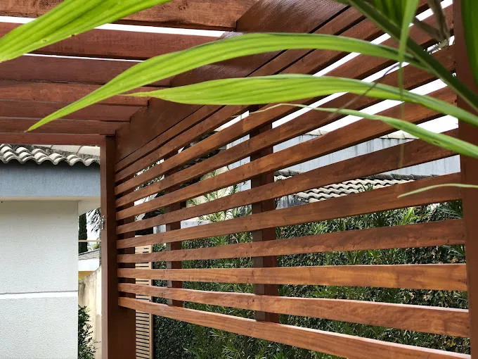 Os Brise são construções com ripas de madeira em disposição paralela, disponíveis em diversos modelos, tanto na horizontal quanto na vertical. Essa disposição permite que limite a entrada de luz solar nos ambientes em que é aplicado, mas sem bloquear a passagem de ar. Outra vantagem é privacidade que os brise proporciona.