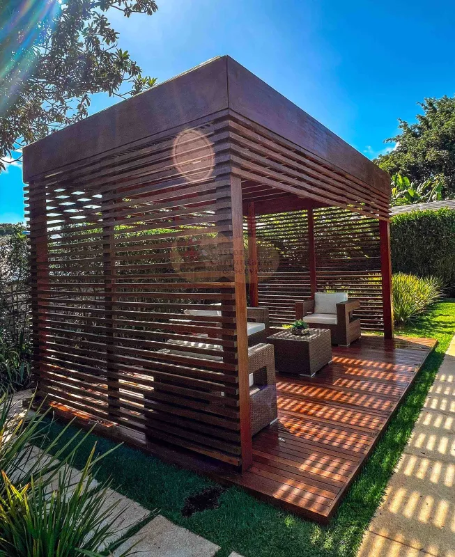 Pergolado em madeira, charme e elegância sendo consagrado mundialmente como uma das estruturas mais bonitas e funcionais para áreas de lazer e espaços ao ar livre em geral.