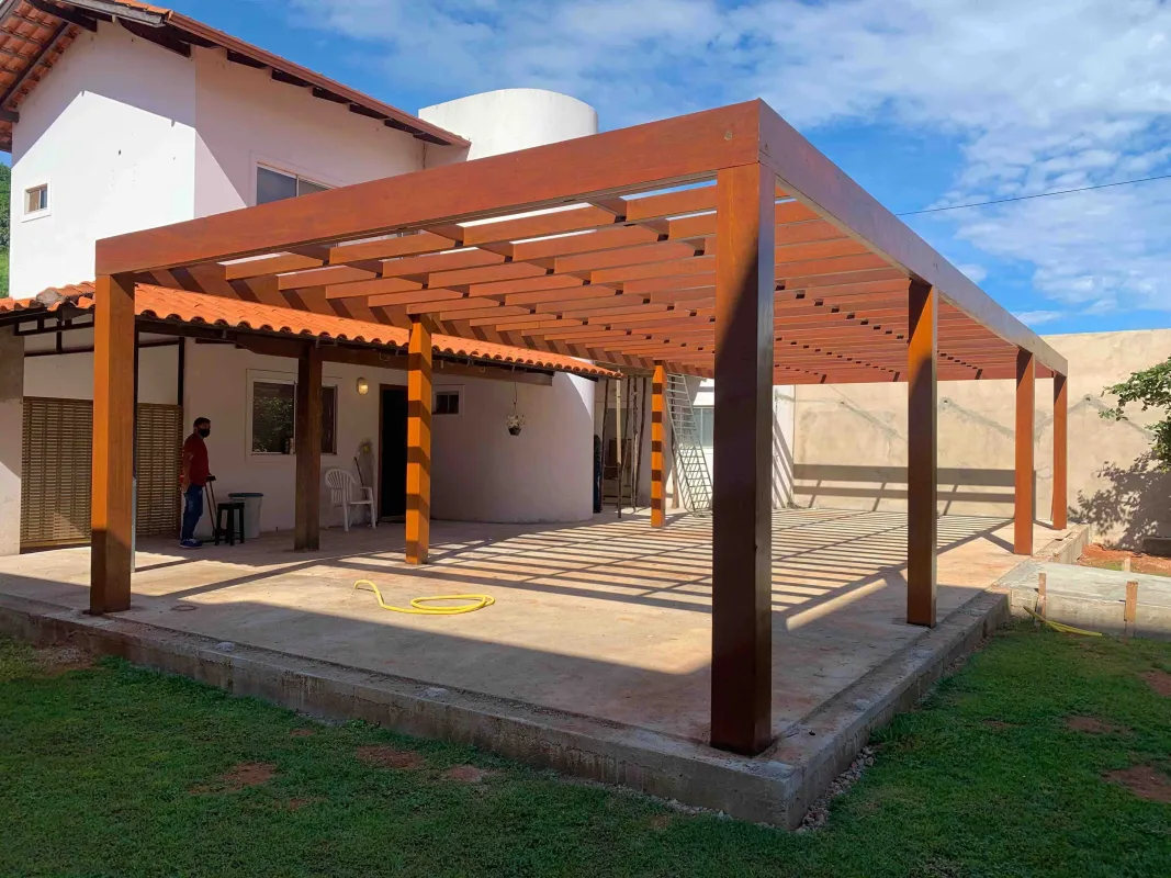Preço do Pergolado não é por m², tendo em vista o tipo de madeira, bitola, modelo, frete e principalmente a quantidade de colunas.