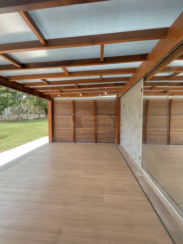 Cobertura de Policarbonato ele protege o ambiente contra as chuvas e sol, podendo ficar ainda mais luxuoso e elegante com um dos nossos modelos de forro de bambu.